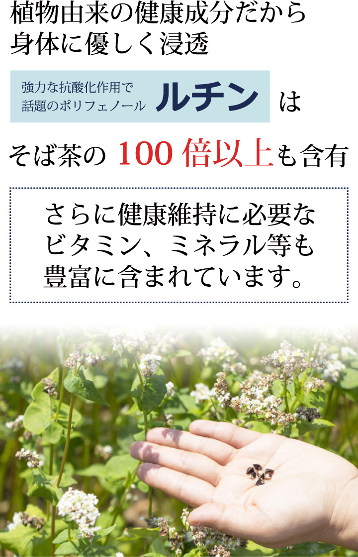 抗酸化作用に優れた【ルチン】含有の香ばしい風味が美味しい健康茶です。お米との相性も抜群。お茶で飲んだ後の出がらしは料理にもお使いいただけます。